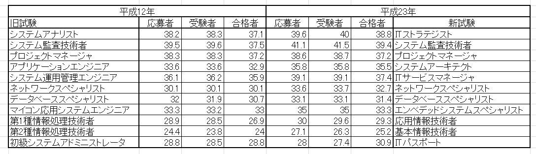 平成21年以降の情報処理技術者試験の平均年齢は,「平均年齢(PDF)」としてまとめられています。