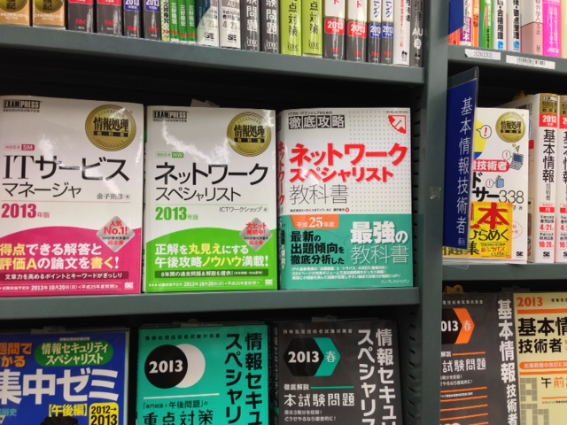 2013年はいろいろ新しく出版されて,大分様変わりしましたので,あらためてネットワークスペシャリスト試験のおすすめ参考書についてまとめます。