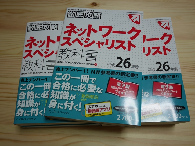 新しいおすすめ本としては,私(瀬戸美月)が書いた「徹底攻略 ネットワークスペシャリスト 教科書 平成25年度」があります。